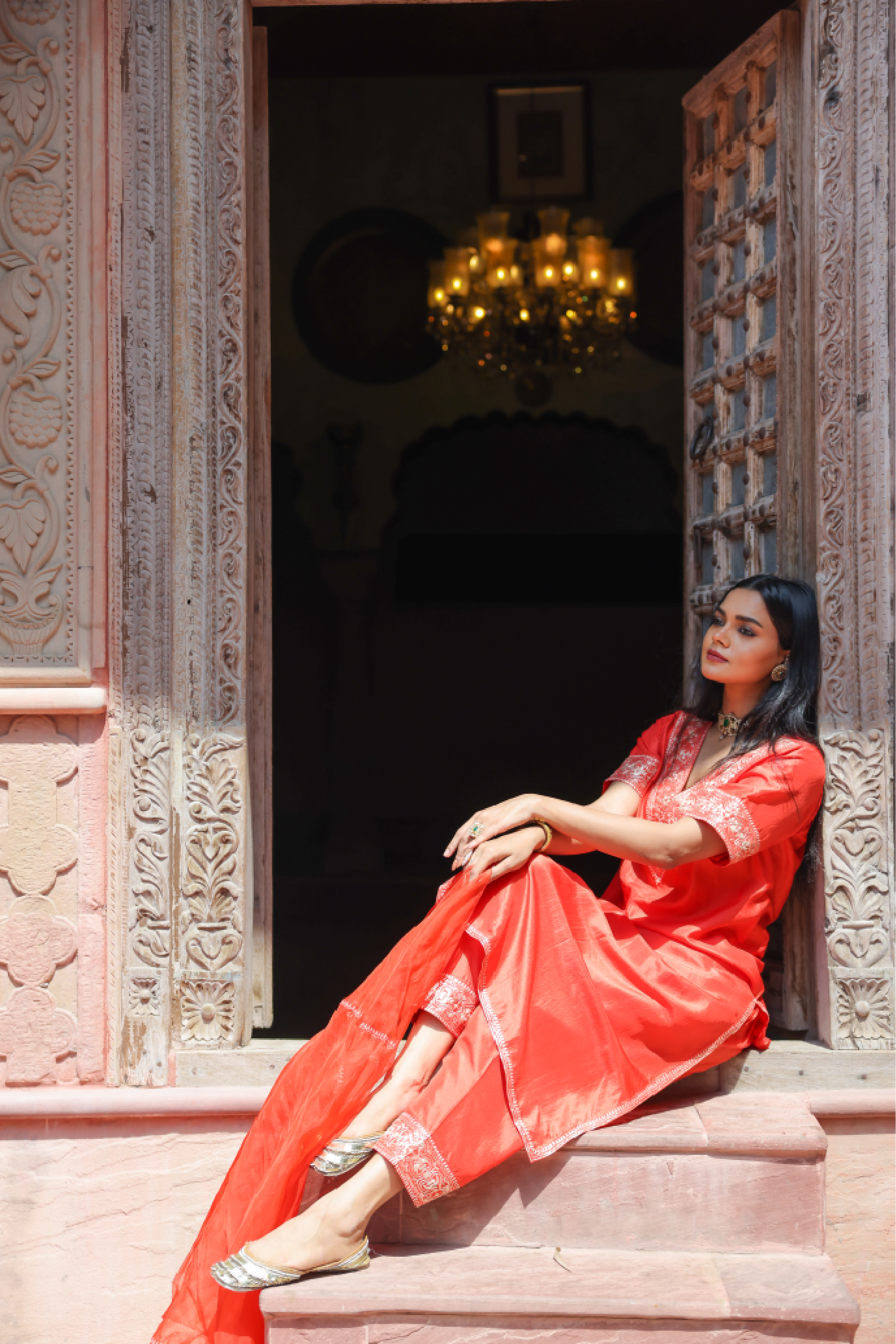 Featuring silk kurta and salwar set in laal color accentuate the essence of classic bride its antique intricate pita kasab work embelllish the laal rang & enhancing the roop of bride who lights up every ritual around.